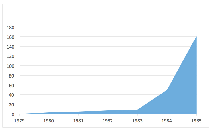 Fig. 1: Child sexual abuse referrals to paediatricians in Leeds [N J Wild, British Medical Journal, 1986]